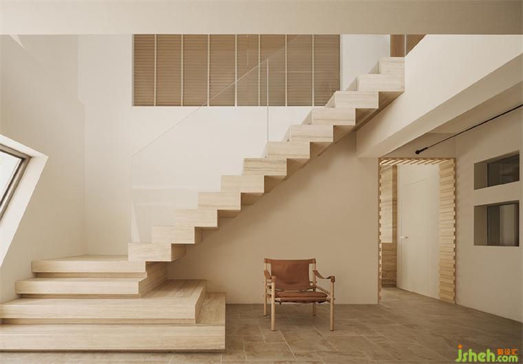 设计师在三层的设计中用了大量的矩形开窗,导入更多的自然光线,办公室顶部的天窗,明亮但聚焦的光线满足珠宝辨识的需求;飘窗里直白明丽的光线让视觉与景观连接;而南面大面积的玻璃砖,让正午倾泻而下的阳光更和煦温柔;西面的侧窗,光线隐秘而温和,将摄影室的私密性完整烘托。