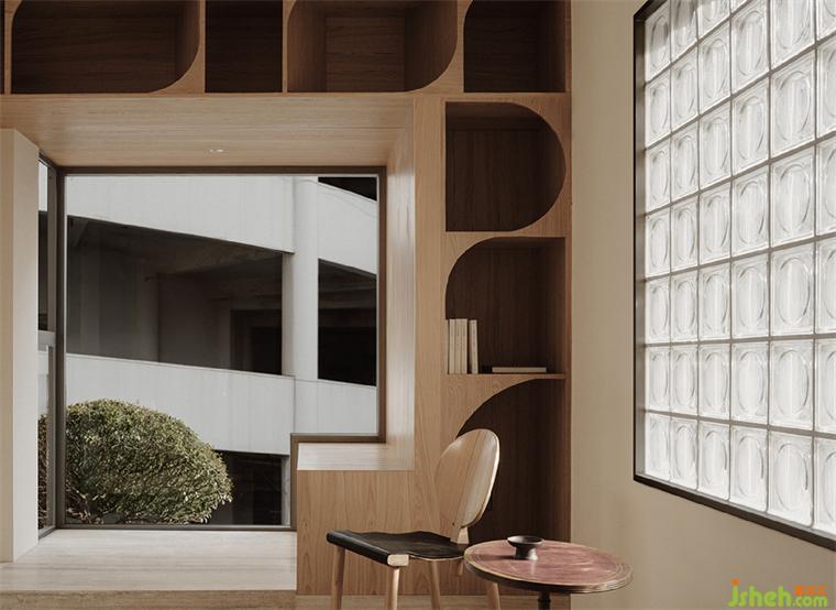 A plenty of rectangular windows was largely used in the design to introduce more natural light.The skylight on the top of the office, bright but focused light meets the demand of jewelry identification; the white and bright light in the floating window bring the landscape in; the large glass blocks on the south side make the mid-day sunlight more warm and gentle; and the side window on the west side, with its secretive and gentle light, protect the privacy of the studio in its entirety.