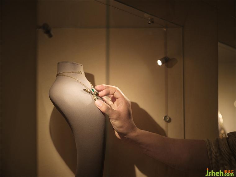 而在室内的颜色表达中,大量的暖色调及中性色的加入,珠宝展厅设计让平衡、温暖、沉静的空间主题呼之欲出,以珠宝作为中心表达,减弱色彩的运用。