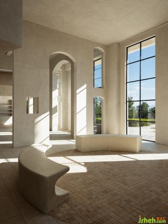 山海相依的文脉环境,让建筑融合了地区民居崇尚自然美的传统。原建筑预作为酒店使用,设计师重构空间格局,将结构比例依据功能改观,用大手笔的尺度刻画建筑立面,颀长而开阔的窗格,以山海寓于虚实。此刻,自然成为建筑的本体,建筑存于自然之中,并立在永恒的时间之外。The mountain and sea embrace this cultural landscape, allowing the architecture to reflect the local tradition of honoring natural beauty. Initially planned as a hotel, the building's spatial layout has been reimagined by the designer, with proportions adjusted to meet its functional needs. The architectural facade is boldly defined by slender and expansive windows, with the mountains and sea subtly intertwined in the play of light and shadow. At this moment, nature becomes the very essence of the building, as it merges seamlessly with its surroundings, standing timelessly, outside the bounds of time.