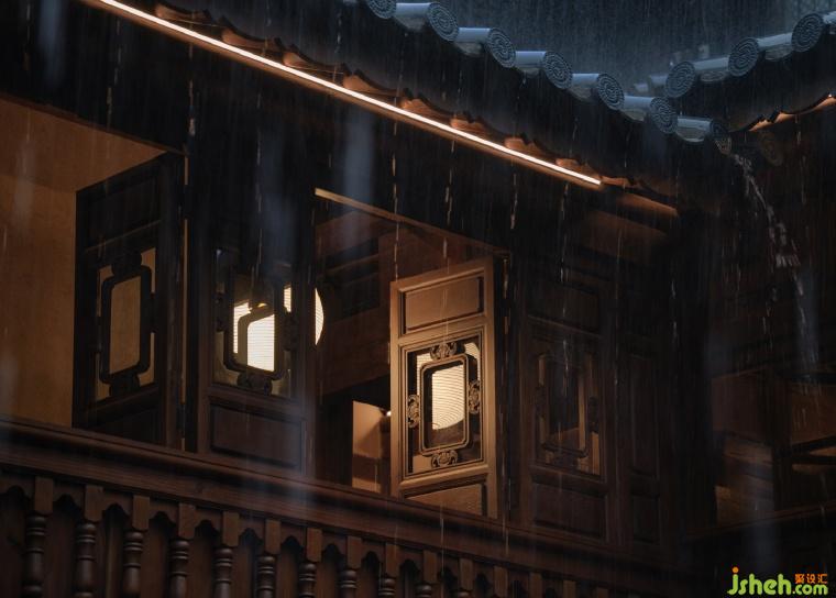 The eaves, rising one level higher on each floor, meet at the corner. A few raindrops fall, drizzling softly, each drop a secret spoken by the years, as the thunder and mist bring a coolness to the summer air. The designer uses the eaves as the heart of the second-floor space, drawing guests deep into history. Visitors gather—stay—then disperse, the wooden window grids recording the cycles of time, awaiting each heartfelt moment.