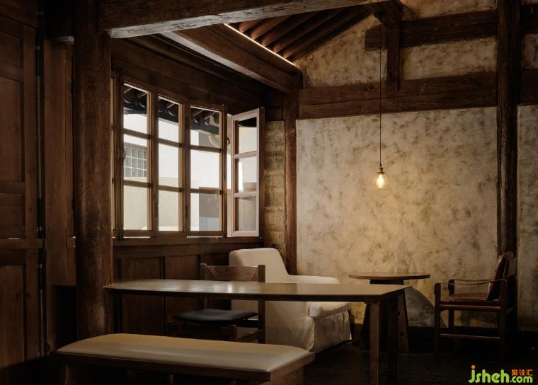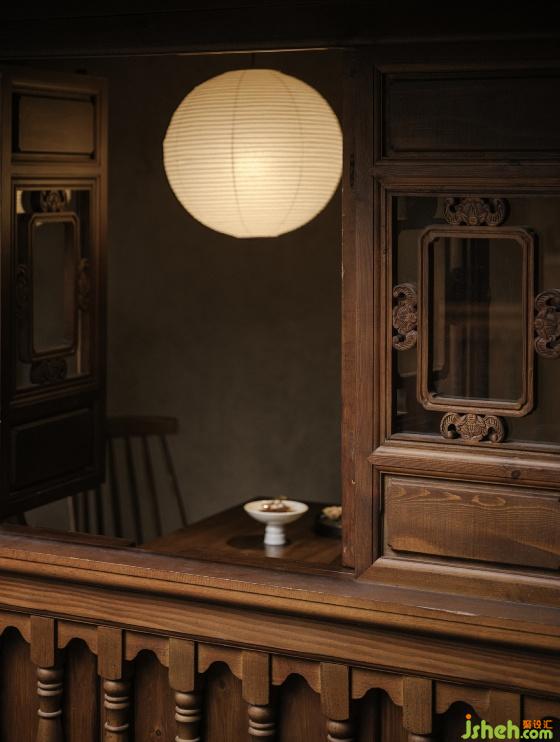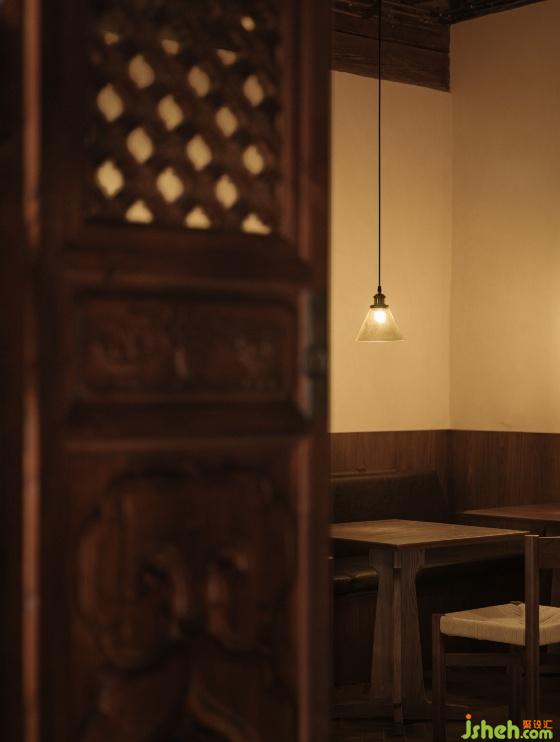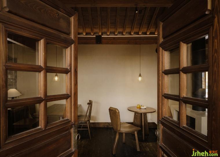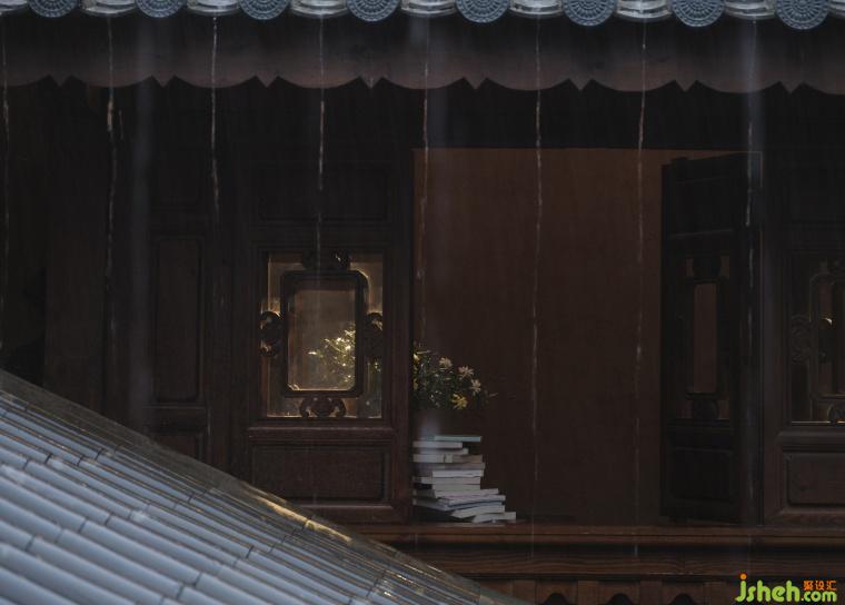 一层比一层高的屋檐,在转角处交接,雨落三两滴,淅淅沥沥,一声一声诉说年轮的秘密,雷声雾霭袭来夏日清凉。设计师将屋檐作为二层空间的主体,讲进历史深处,来客如织,相聚-停留-散去,木窗格撞见、记录历史的轮回,只为一瓢倾心。