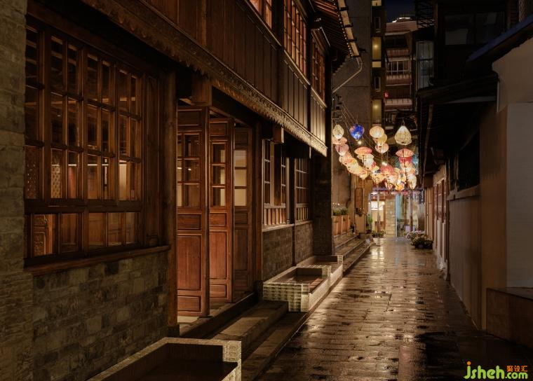 阳光从日出浅浅到暮色蔼蔼,在砖石和木作间,深深浅浅地飘游,高低错落,从屋檐到中庭,于闹市开辟出一方幽静、明媚的空间。音乐、美酒、茶香、美馔在明朗的日光下蒸腾、缭绕,直到霓虹四起,久久浸透在人们的欢呼喜悦中。