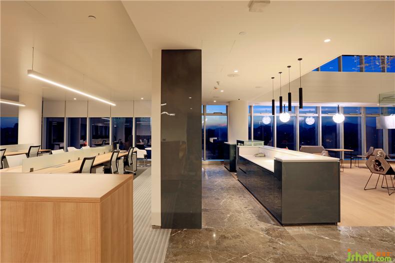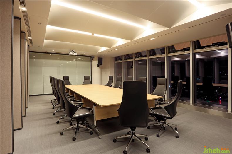 而LED吊灯的使用,柔和又不刺眼的光线,一方面增加了局部照明,办公室设计另一方面让人清醒、振奋,又不会觉得沉重压抑。半透明的效果,又最好的保障了会议室的私密性。智能控制系统就像一个智能管家,早晨上班时间到办公区照明自动开启,随着日光引入,灯具自动调节明暗保持桌面恒定照度。中午时分,照明自动调暗提示中午就餐时间到了,延续大致30分钟,照明关闭,也可以同步窗帘进入中午休息模式,把机械动作变成人性化照明管理。