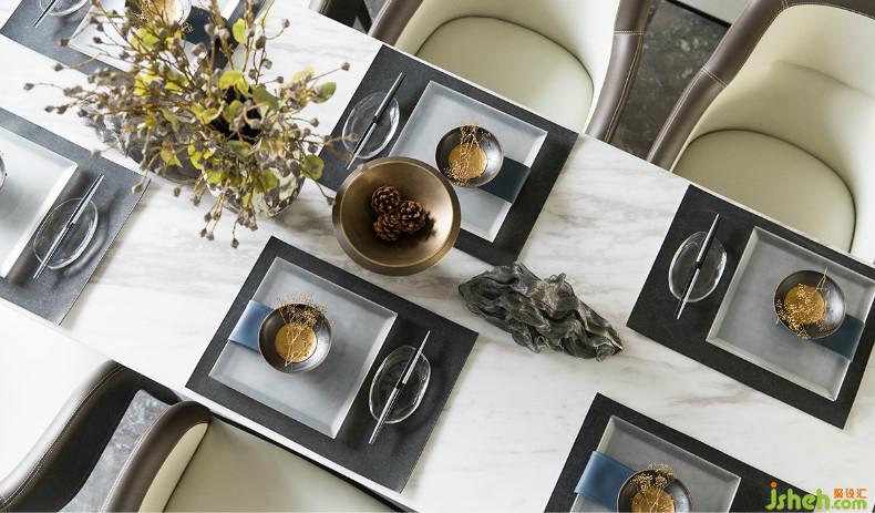 餐厅空间在青山的自然意象上延伸,在材质、形制、色泽等的细部上依稀可感雅澹而隽秀的格调。室内设计师