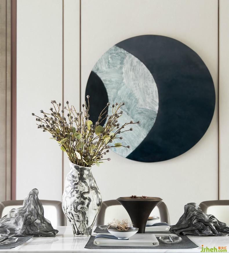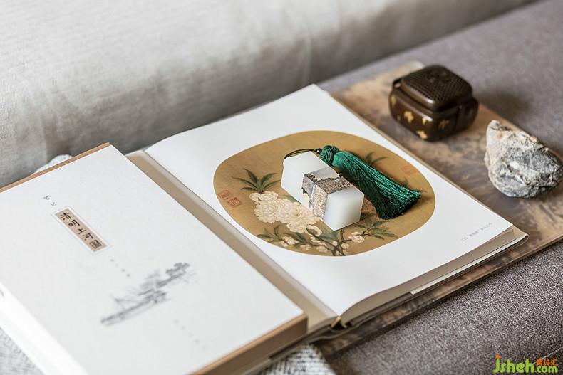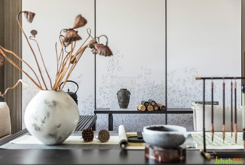 眼中看日升月落,笔下绘草木枯荣,书中品四季轮回。毛笔、笔架、花瓶、书画、香炉,属于中国传统文化的元素一一铺开,扬起千年历史尘埃。室内设计师