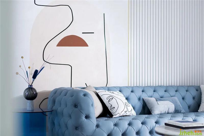 WΛMI运用这一理念,打造了位于广西彰泰的315㎡顶层复式住宅样板房设计。用优雅与精致奢华的橙蓝金撞色来营造法式调性住宅的浪漫与“轻”生活慢享格调。
