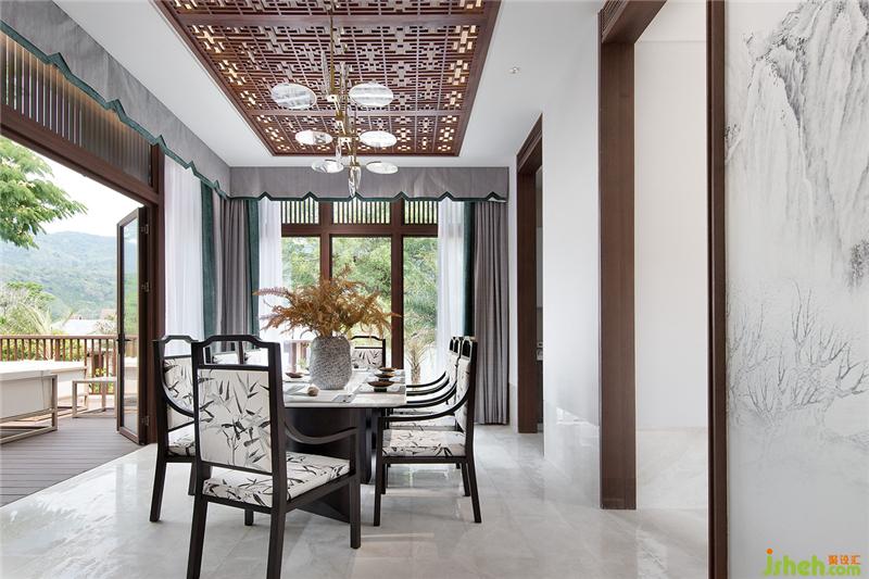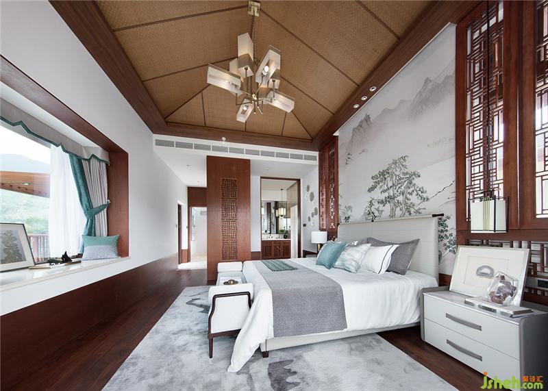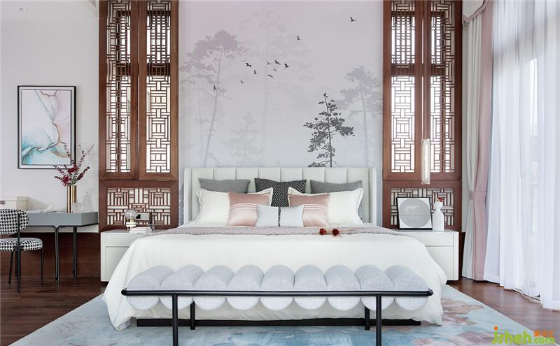 别墅所有卧室的床背景都由韦美设计来整体打造,素雅简洁又各有特色的背景构图。韦美将美不胜收的七仙岭引入室内,采用中国水墨的虚实手法,让整个空间更具诗情画意。
