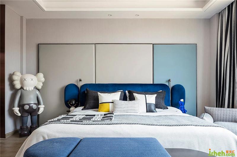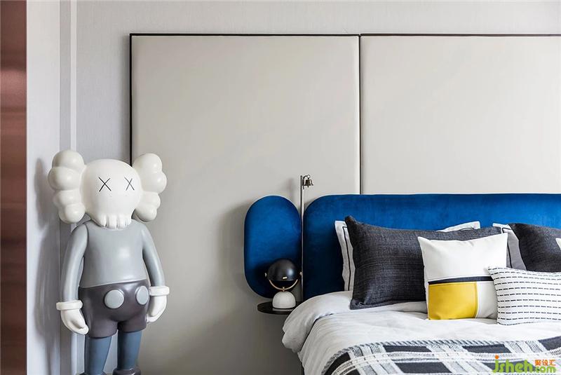 三层男孩房与户外露台规划为一层,亲近自然,培养男孩的独立性。将大面积的光迎于室内,沉静的蓝色无温暖的阳光相碰撞,让理智无温情并存。整个房间以风潮正热的KAWS为设计元素。KAWS的情绪如儿童的一样,没有隐藏的与世界进行交流,做一个真实的自己也是一种潮流。