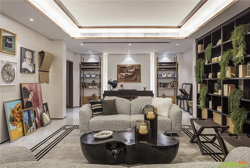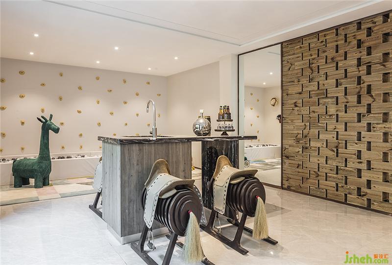 作为空间中主要的休闲类社交空间,艺术收藏、亲子娱乐与酒吧舒适自然的软装家居的彼此互动中,产生出了于春意中纵情娱乐的家居休闲场所