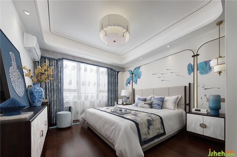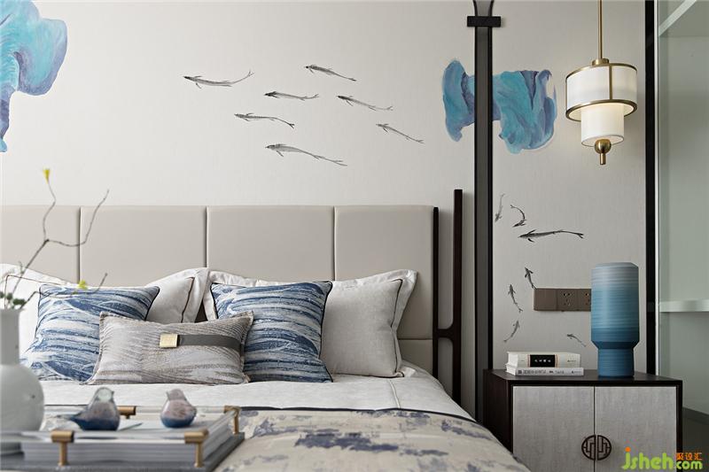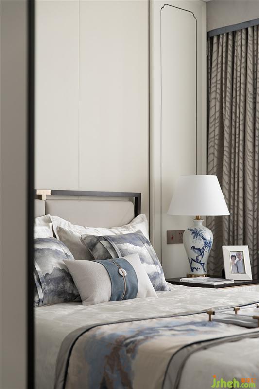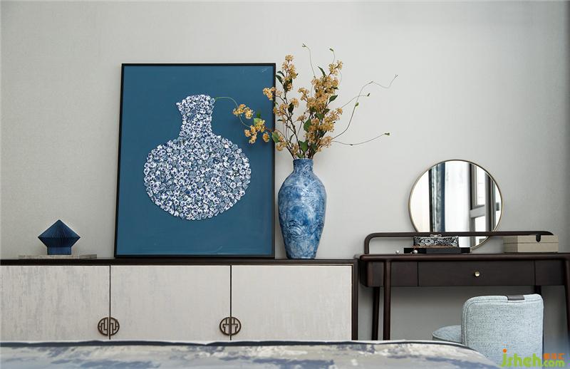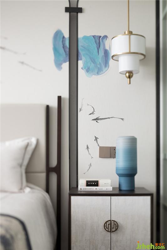 如果说元青花是雄浑大气,那么明代永宣青花就是清雅朴素,超凡脱俗。主卧设计上,设计师融入明代永宣青花的特点,屏风错落的散晕斑点有如水墨画的墨晕,淡淡晕染出超然之境。雅致简洁的家具在有序的坐落间有水墨青花散落开来,沁染心神。