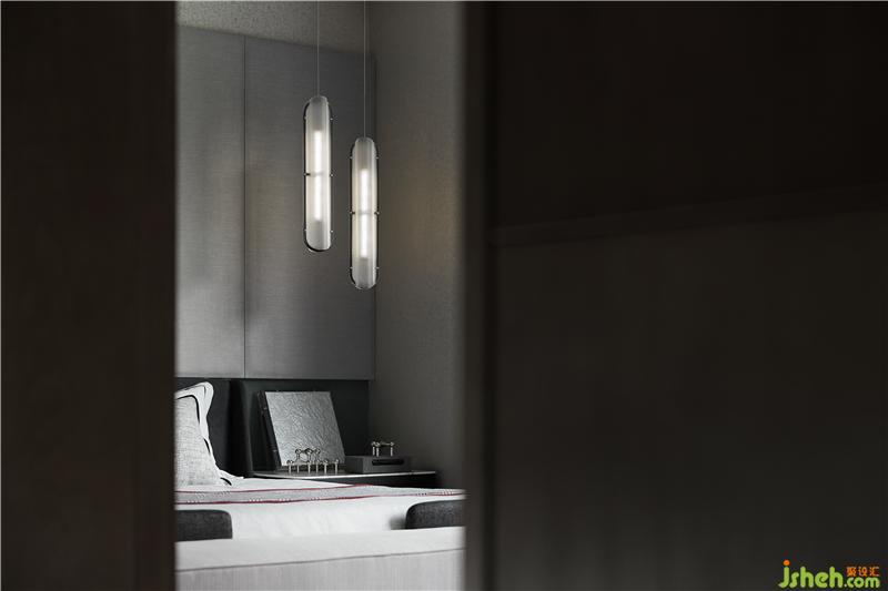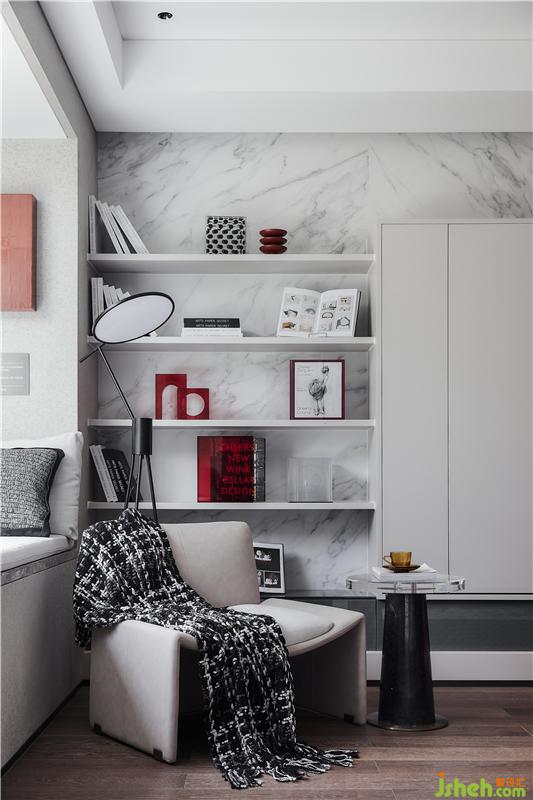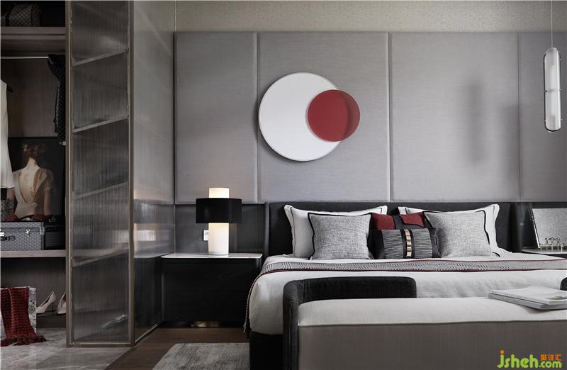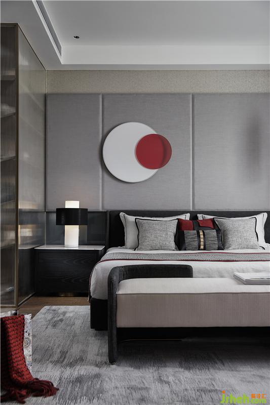 主卧延展的开间使用稳重淡雅的灰调,没有夸张与炫目,而是平淡、温馨,细腻地表达出对生活品质的追求。这是一个卧室该有的舒适。即使处于阅读角的一隅,亦关乎艺术、传统大漆器具与现代艺术家郭天天的作品《朱园》相糅合,成为素雅空间的一抹点睛之笔。