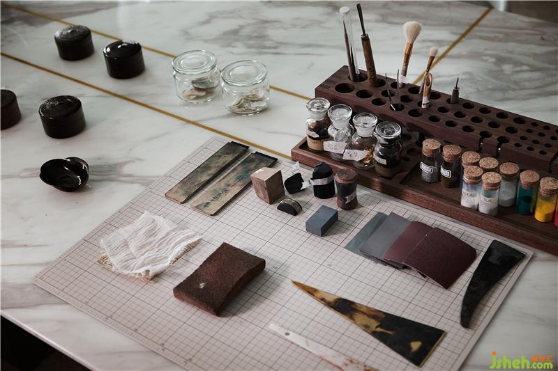 在工作区域我们提出“融居”的设计概念,让漆艺的传承、展示与生活为一体。大漆是有生命的,它在岁月与生活中不断磨砺,当传承传统工艺的历史使命混合当代人居氛围,自然而融洽地演化出极具活力与艺术的现代精英气息。