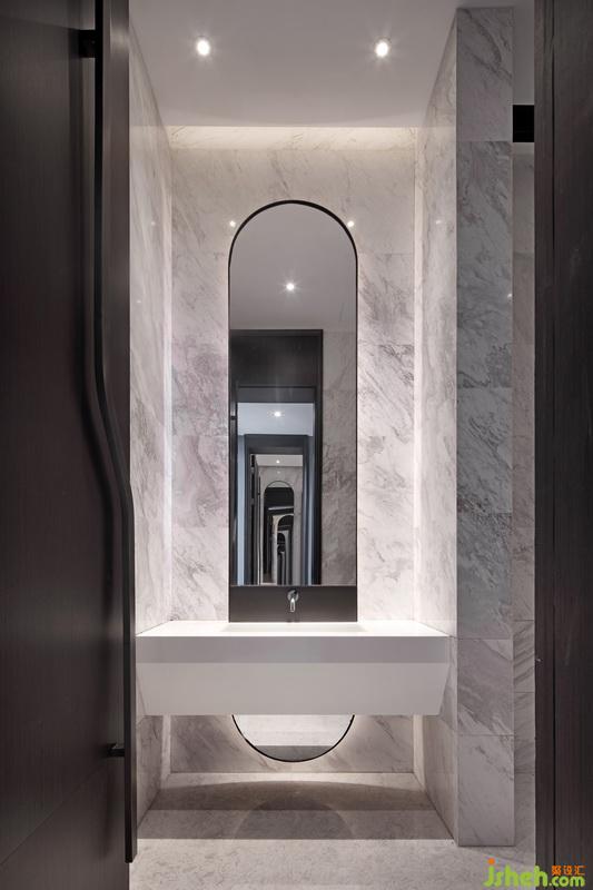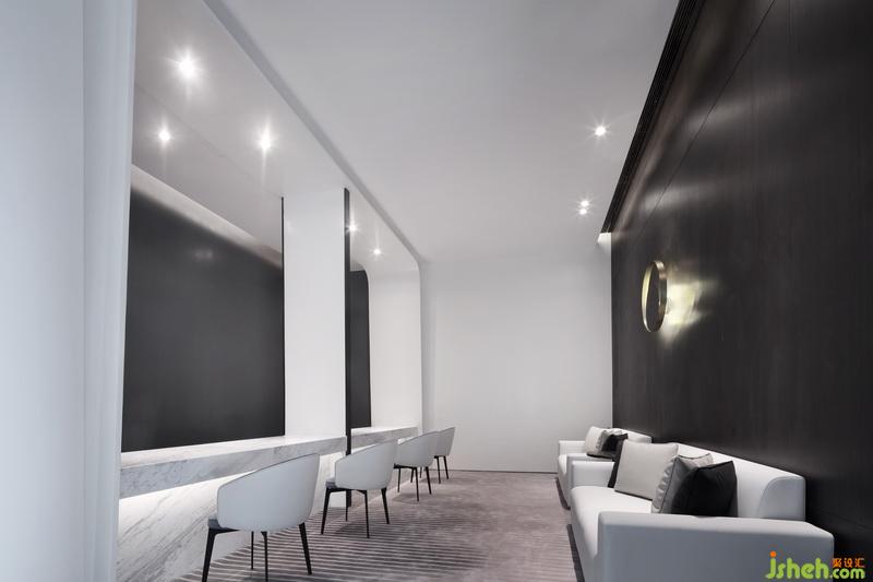 在这里,设计师在喧嚣纷扰的当下开辟一方静谧之地。黑白灰的朴素清雅,温婉的木饰面,在现代金属材质的灯光辉映下,让置身其中的人们多了一份细腻而宁静。