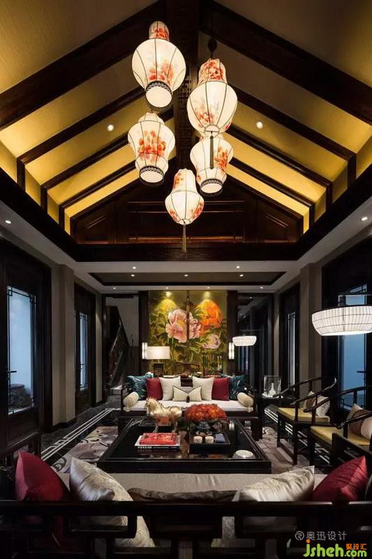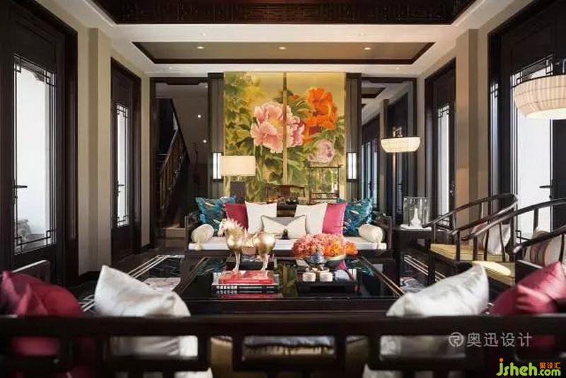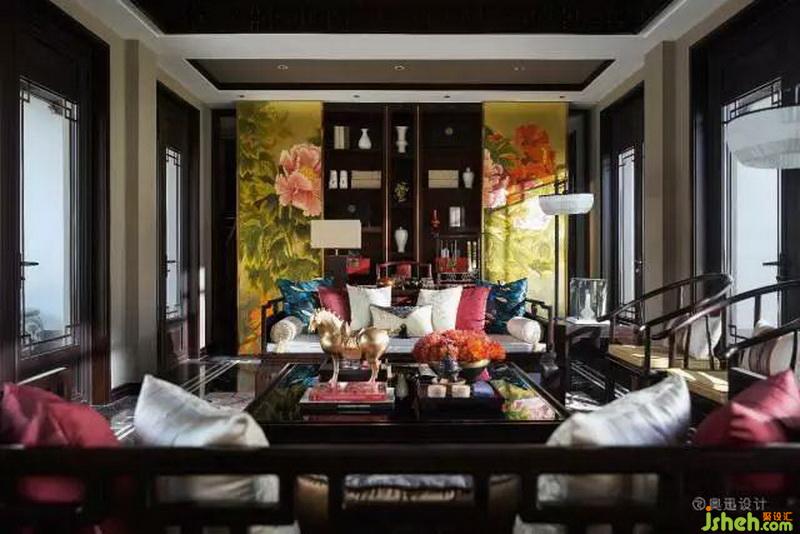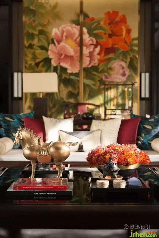 “唯有牡丹真国色,花开时节动京城……”在历史的足迹中,牡丹于人们心中有着丰富的文化象征意义。本案,设计师攫取了传统中式的设计理念,以“花中之王”牡丹为主题线索,将其以夹绢玻璃、吊灯、趟门等多种不同的“形”与空间融为一体,缀以“中国红”、古典黑等经典、热烈的中式色彩搭配,诉说古典美学精神,演绎清雅风韵、端庄丰华的东方大宅。