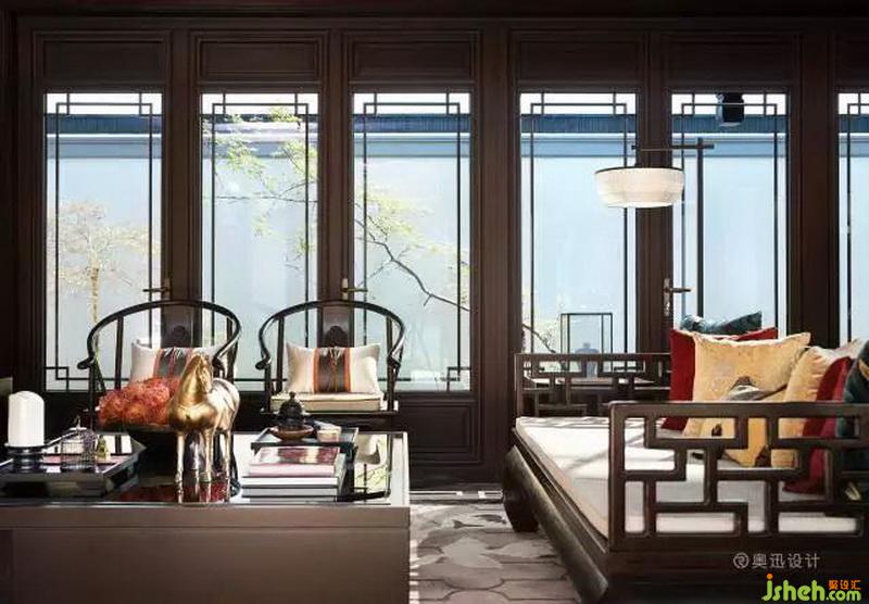 空间以米白、浅金与灰色这三种优雅色彩为基调,并用“中国红”来提亮空间。植入传统中式空间“木”,搭配极富手感的丝绸织物与真皮布艺,并缀以“牡丹花图案”于趟门、地毡、抱枕、夹绢玻璃中,藉以点明主题,渲染了一个拟态的“中国士大夫”式自在会客场所。