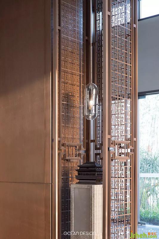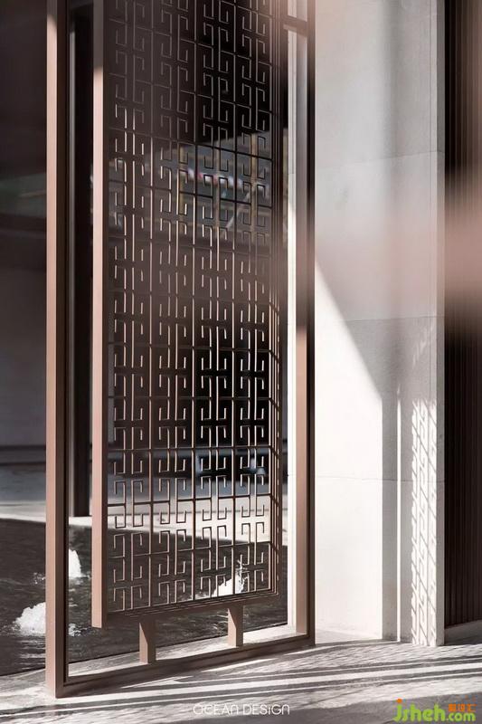 于是,设计师以追寻历史文化为出发点,借用水纹、山峦等元素和笔墨演绎山河脉络,将大地之美和人文特色融入当代美学,通过现代手法来演绎空间的韵味,熟练将留白、光影等手法,让观者在参观时感受到递进式的尊贵感。