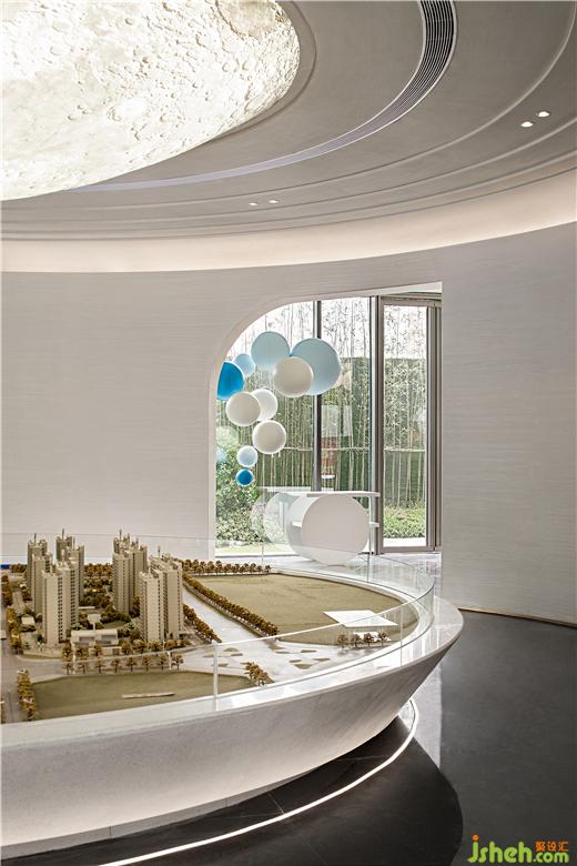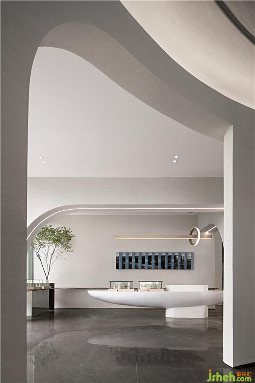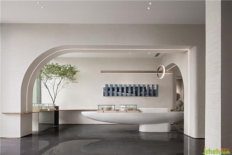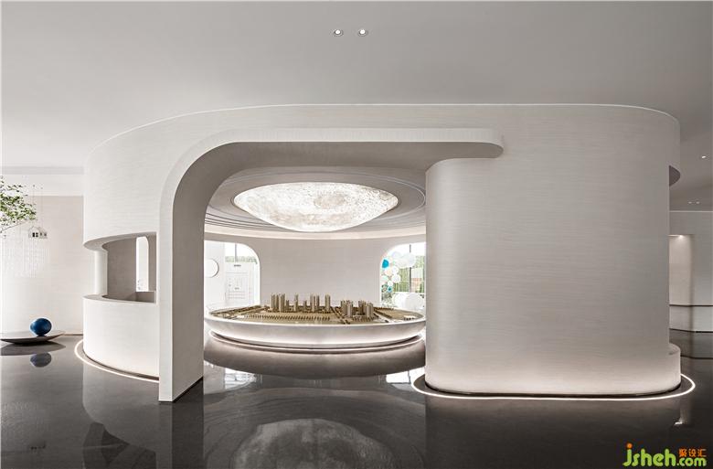 售楼处设计曲线在空间的运作,打破对称、端正的规律,舒缓的旋律与轻柔的摆动相互契合,动感活泼的韵律美悄然而生。跟随设定的场景,人们移步景移成为了空间的主角,怀揣着美好的憧憬,迈步未来的探索。