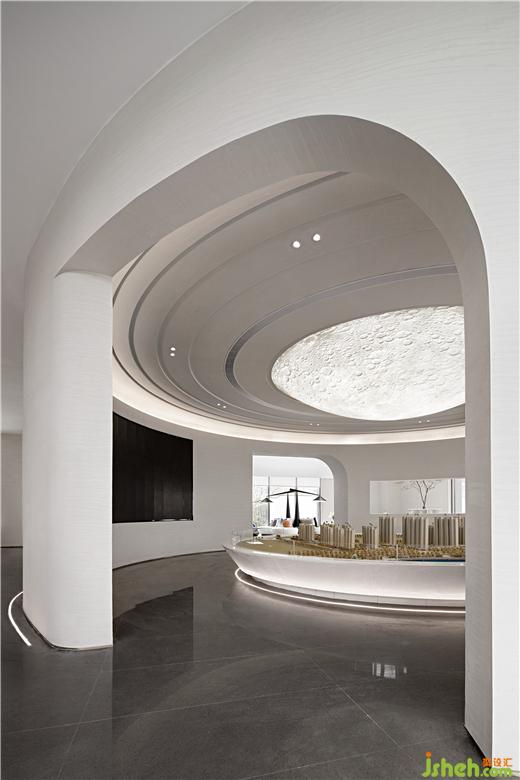 设计师创造性地将宇宙的斗转星移幻化入空间之中,随着人们的走动,颇有踏月神行的轻盈感。整个空间没有多余的装饰,光影在有限的空间里投射出无限的阔度,于在室外面看,在室内其中,在方寸之间,都可获得震撼心灵的观感体验。