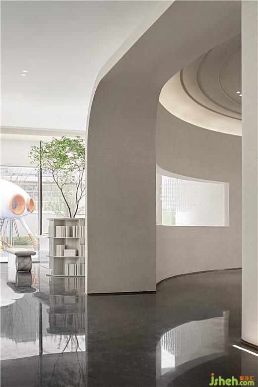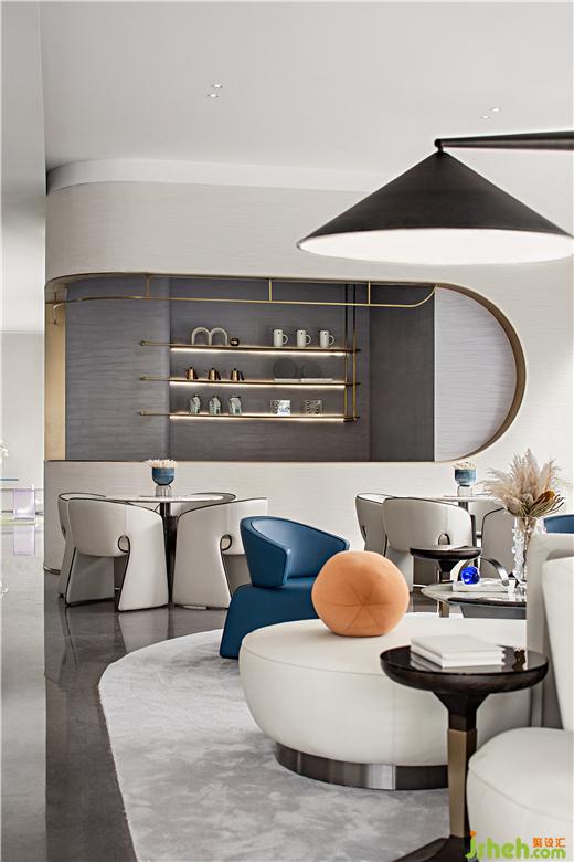 深入空间,设计师延续星空的设计,强调角色的专属性带入场景。在色彩上崇尚简洁,以“曲线”的自由和洒脱,勾勒新生代的活力与光彩,点点柔和的灯光相互交映,散射着柔和的气氛,精致的空间倍感静谧。