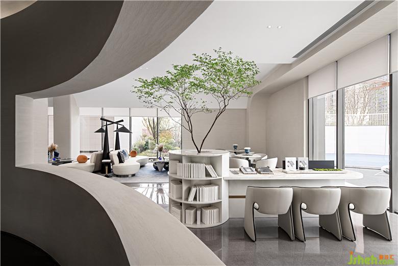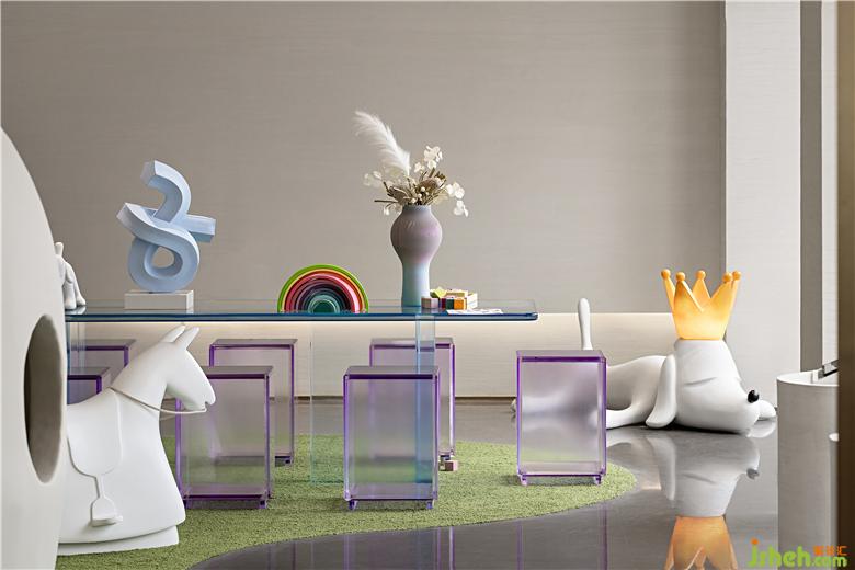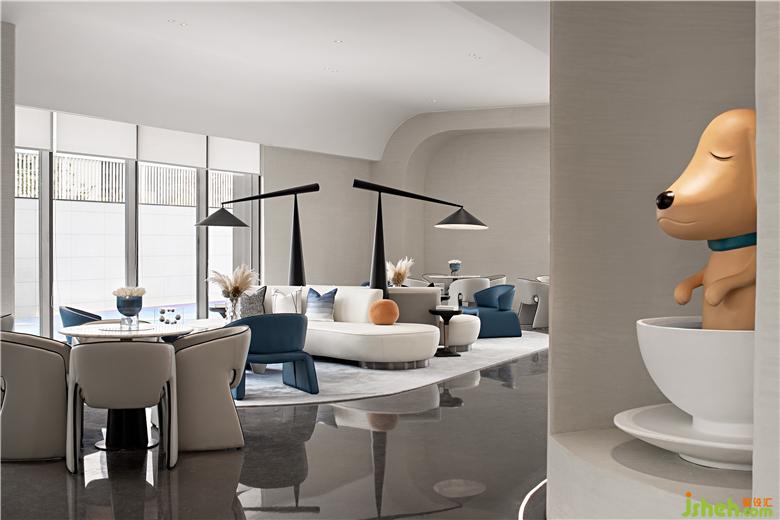 售楼处设计安放各种充满想象的艺术品散落于各处,打破空间稍显商业气息的固有印象,通过人与物体的互动,触动内心的情愫,让城市人居的日常生活和对未来式的体验得以表达。
