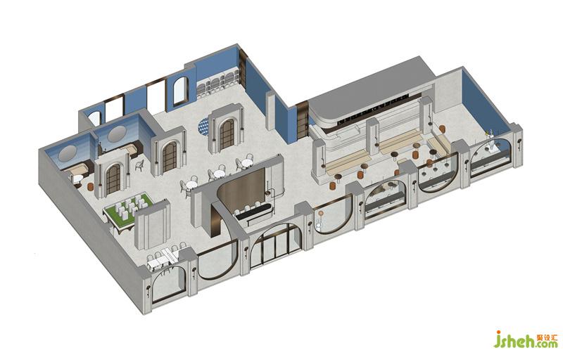 以梦游伊甸园为故事主线,通过梦幻色彩的渲染,光影的律动,将本案呈现出不同场景的沉浸式体验。前场为外观与功能性为一体的咖啡吧,后场则侧重商务交谈的私密性,以社交性场景为主导,营造轻松融洽的商务氛围。