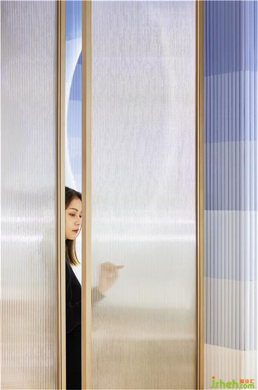 步入后场洽谈区,设计师综合考量空间当下的商业属性与未来的社群聚合属性,以更极致的空间情境细分,疏密有序,予人丰富有趣的交互体验。穿梭其中,会发现,每个区域看似分割相离,实际上却相通。