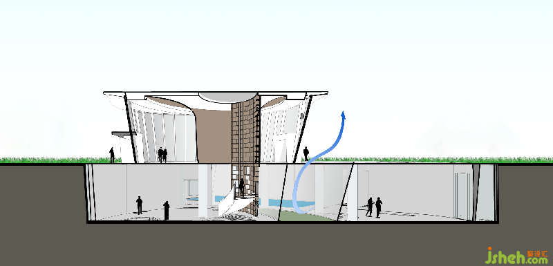 以天幕仰首,在负一层空间中设置多处采光天窗,开启了室内与室外的延伸。在平缓的光影相映下,产生一种温暖的包围感。