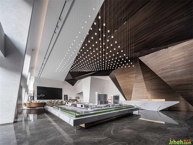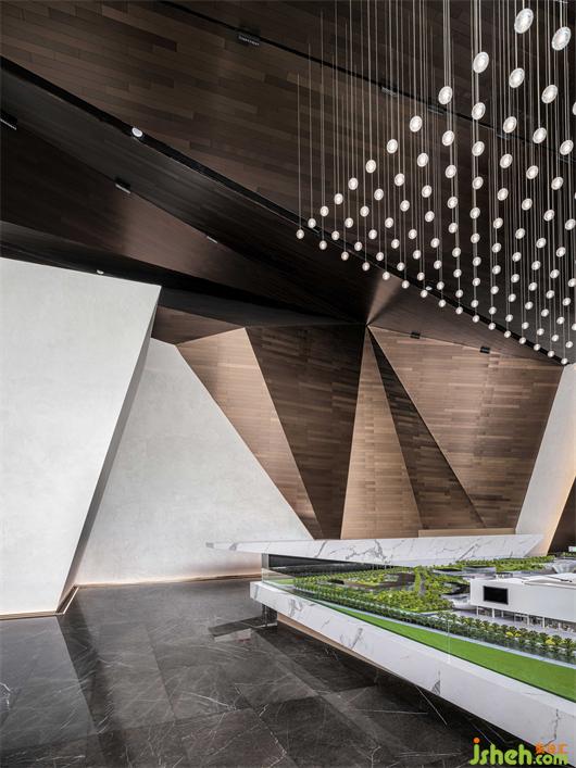 模型区以充满秩序感的粒状吊顶引入光线,鳞次栉比又连绵起伏,如山脉上的浩瀚星辰,从中漫射的光影让空间视野极具延展力。