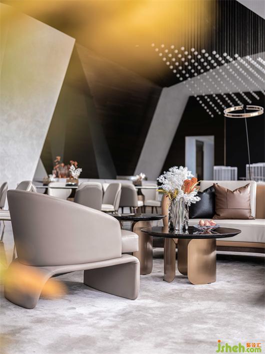以体验感知移步室内的邯郸山景,撷取一山一石徜徉其中,砂金色、米黄、曜黑,这片大地的壮丽色彩在此渲染开来。