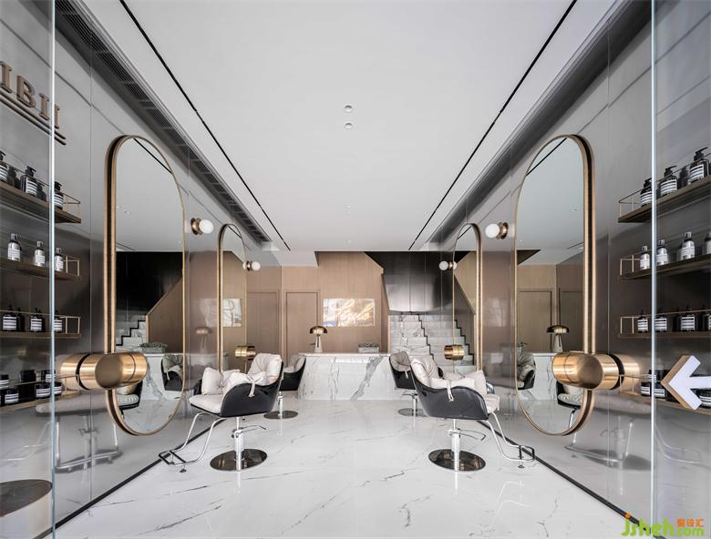 金色隐喻昔日山脉的联系,黑色代表对未来的敏锐探索。在美发沙龙商铺设计中,奥迅选取沉稳的黑金来打造摩登精致主义与返璞自然的平衡。