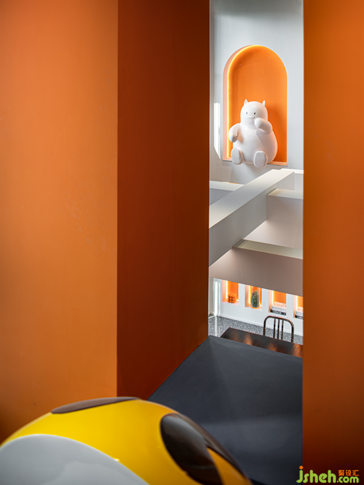 样板房设计以打破固有枯燥的游廊印象,奥迅将观看、玩乐、交流等多种功能化进行集成,通过上下空间跨域式的连通媒介,以隐喻手法象征主角低调的出场,使得小空间也能呈现出更生动,更多元的居住感受。