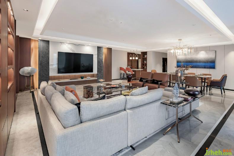 为了将这份故事延续进行,空间取“东方意境,现代手法”的设计理念,室内设计师在当代生活方式的概念上能延续东方文脉,为空间勾勒兑比出一个极有艺术气息和文化内涵的现代奢宅。