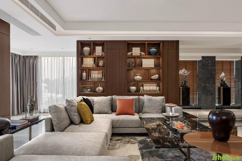 再者,东方文化的隐逸在内塑造,也需要外部家具器物的烘托,从而保持精气神三者统一,所使用的地毯、茶几、沙发、坐凳与艺术摆件等,从颜色、形状和纹理等,保持感官上的简约整洁。室内设计师尽管外在拥有现代美学特征,却以低调沉稳的精神面貌示意,实现品味和思想上的优雅。