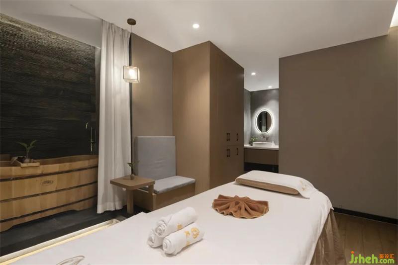 而与氛围有关的一切,包括空间布局、色彩、材质、纹理、光影的细节缺一不可,两种材质的帘子质感都很轻柔,养生馆设计提升了空间的灵动性,具有设计感的座椅、茶几品味独特而优雅,明暗、深浅的对比给人以有趣的视觉享受。