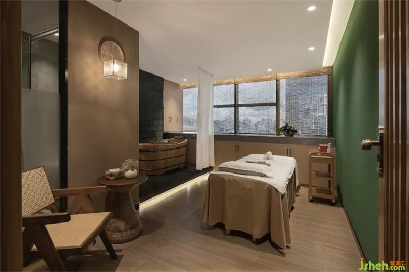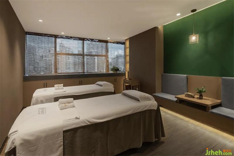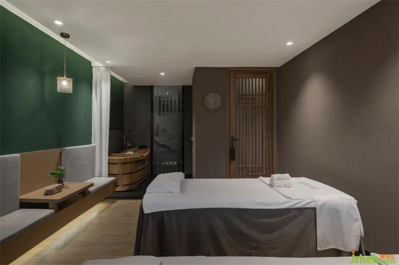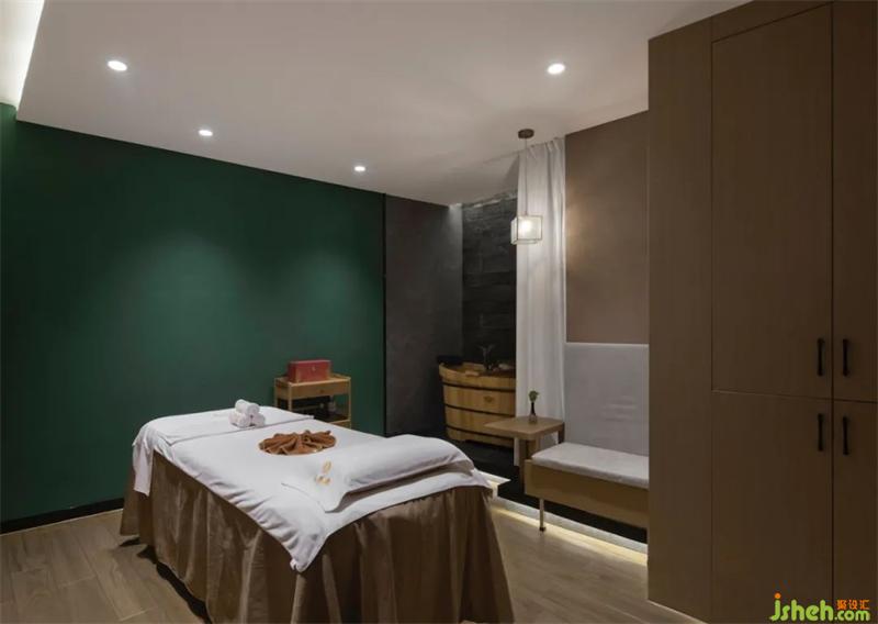 “减去浮华,终归本真”——调理室都以深绿色为主调、木色协调,点缀暗调灯光,养生馆设计简单但充满了春季的明媚与浪漫,如诗如画,软装搭配上也统一风格,自然为本,精致舒适,又各具风雅,氛围感十足。