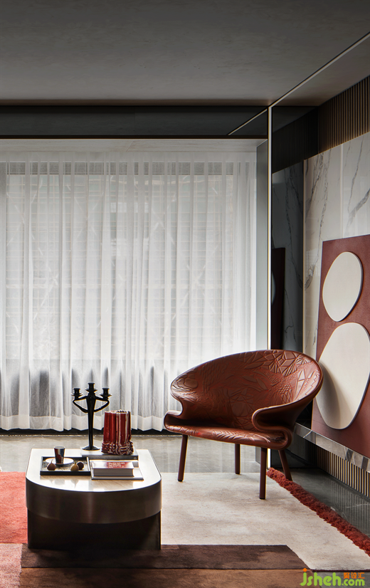 布鲁盟设计一向以先锋为尚,以游牧世界的开放心态,描绘顶奢质感与灵动日常的空间镜像。此次以“义乌红”的在地性为源点,新构、晕染、重塑家的符号意义,设计师解构出寻常造物之外的非常规之美,编织静享怡居的塔尖大平层藏品。