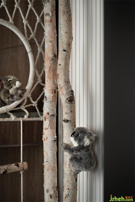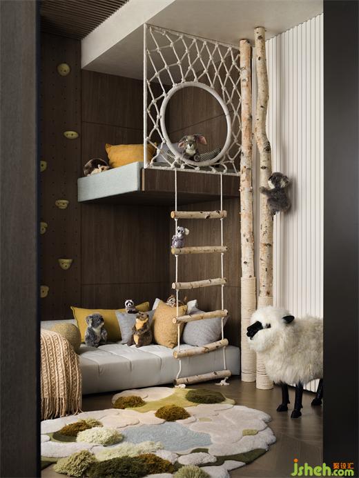 用地毯模拟森林的植被,而小羊咩咩、考拉懒懒成为空间的守护者,样板房设计师将自然搬进儿童房,为小朋友编织梦想。