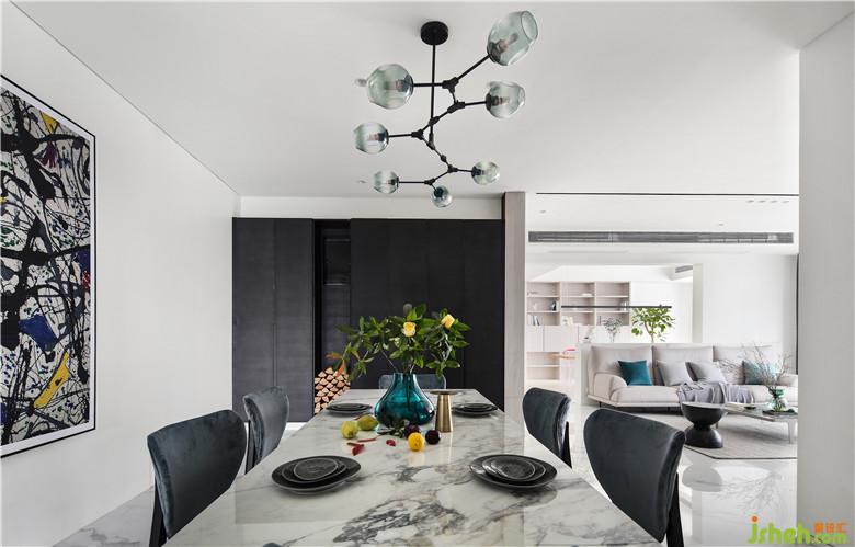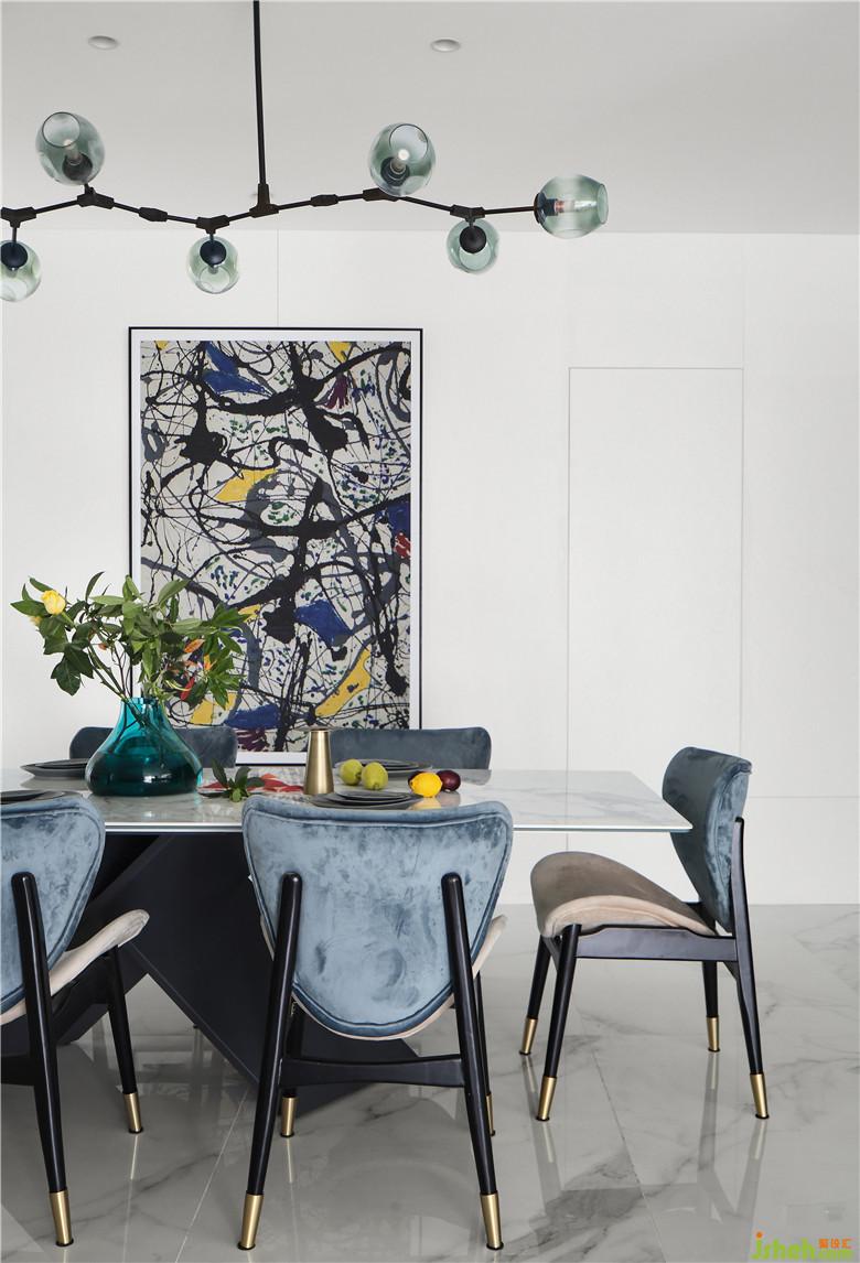 餐厅,其实也能释放超越常规的想象画面,而需要的仅是一幅画。柠檬黄、枣红、苹果青,黑白灰的简约空间因为这些活跃元素的加入愈发显得时尚,尽致描绘多元的层次美感。