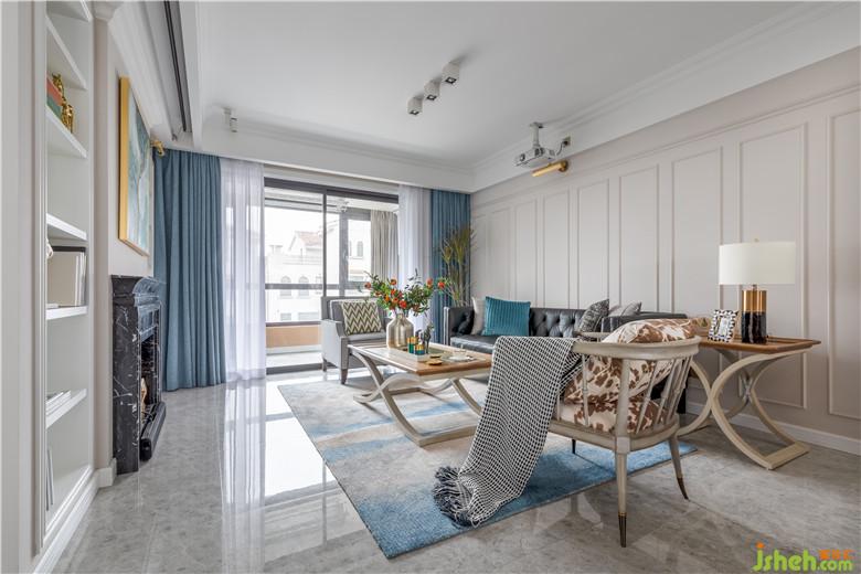 白色、米咖色和清新蓝是整个客厅的主题色。细心可见的金属装饰镶嵌在米咖色所赋予的柔和之中,静静绽放出旖旎浪漫、轻奢的优雅之美。