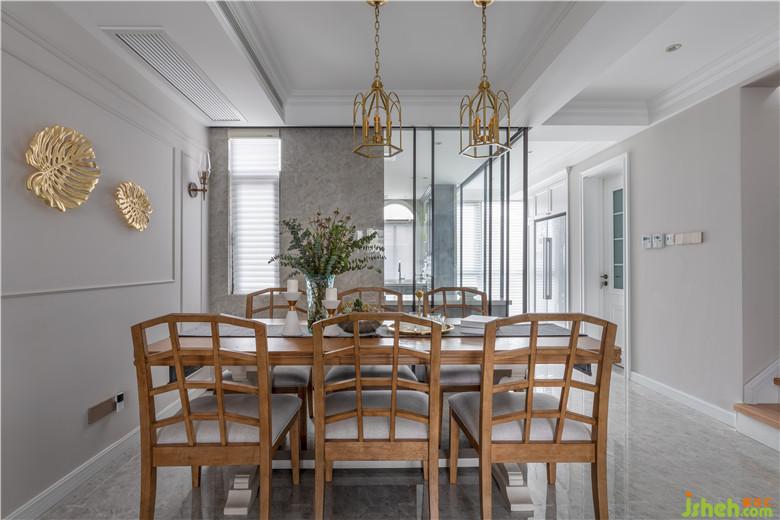 在设计沟通伊始,女主就明确表达了诉求——希望家里能呈现美式的轻松舒适和法式的浪漫轻奢。因此室内设计师摒弃了繁琐和沉重,选择了体量上较为纤薄、造型弧度更柔和的家具款式,弱化传统美式的厚重感。