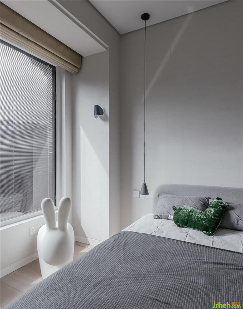女孩房和男孩房,依然是淡淡的。但究其细节,无论是低饱和的颜色、家具的曲线、学习氛围......都慢述父母对孩子温柔的期待。