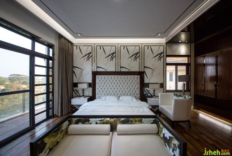 床头交错伫立的背景装饰像把折扇慢慢推开,将空间的意蕴荡漾开去,入目尽是简约、典致的家具,在简约硬朗的空间中,呈现出庄重与优雅的双重气质!