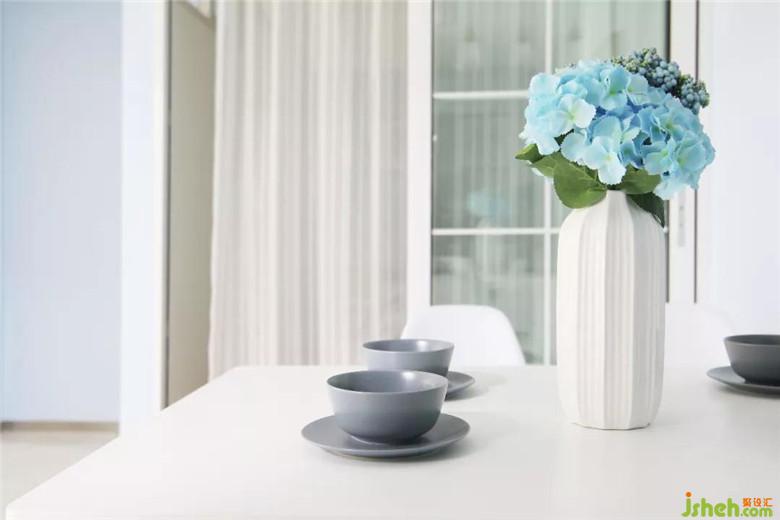 后来,我们的餐桌不再是一片狼藉,淡蓝色的花束替代了一堆瓶瓶罐罐的杂物,桌上的小情调带出了生活的仪式感