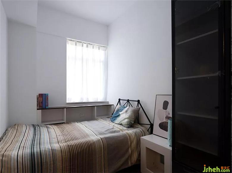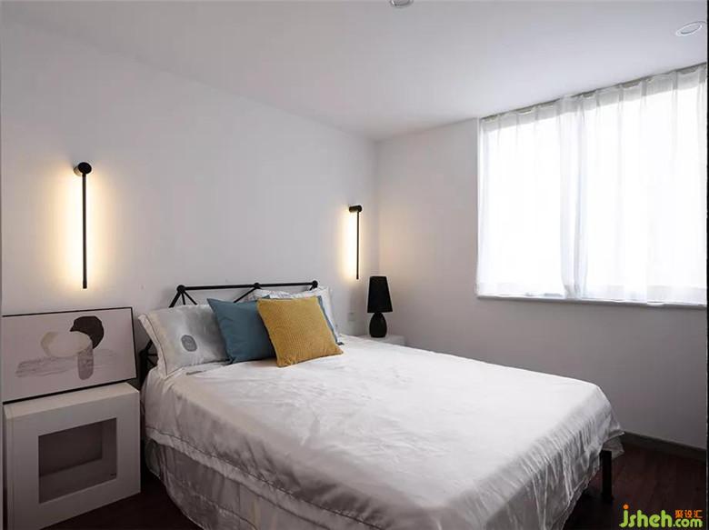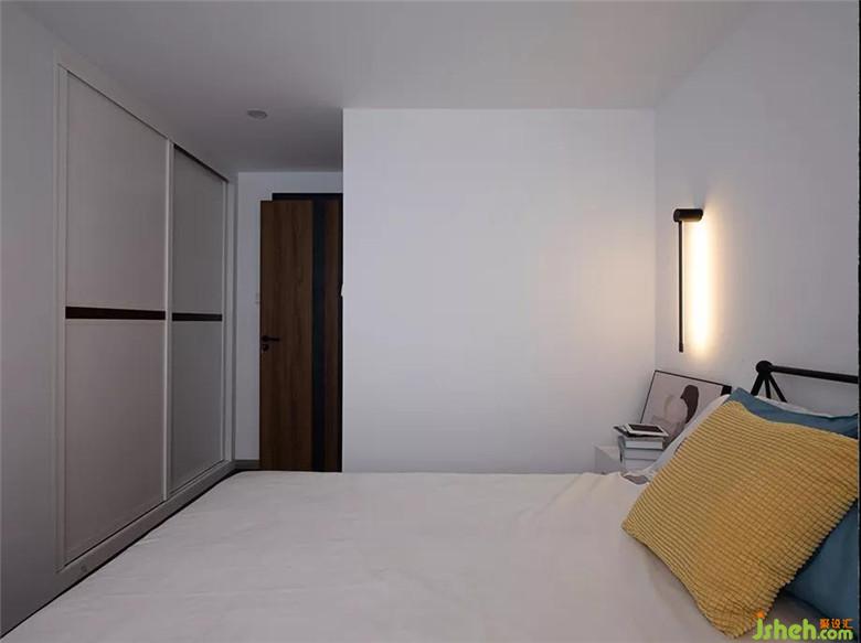 其余两卧室延续了空间简洁风,美观的同时兼顾其实用性;都说简而不凡,看似简单的外表更考究其细节;小到灯饰,大到床,柜子无一不挑撑起空间的格调及简洁语句。好比次卧里的床沿柜,床尾900mm宽的容量惊人而且空间分类清楚,完全满足收纳需求。