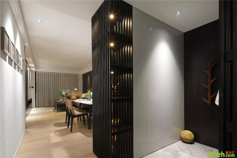 玄关处设计得很巧妙,衔接了餐厅和厨房的空间,玄关具备临时挂衣、放包放帽寄存小件物品等按家人实际需要而设置的贴心功能,功能性与美观性并重,通过隐藏鞋柜的巧妙设计,使玄关看起来更加干凈利落有序,让室内空间尽显高雅。