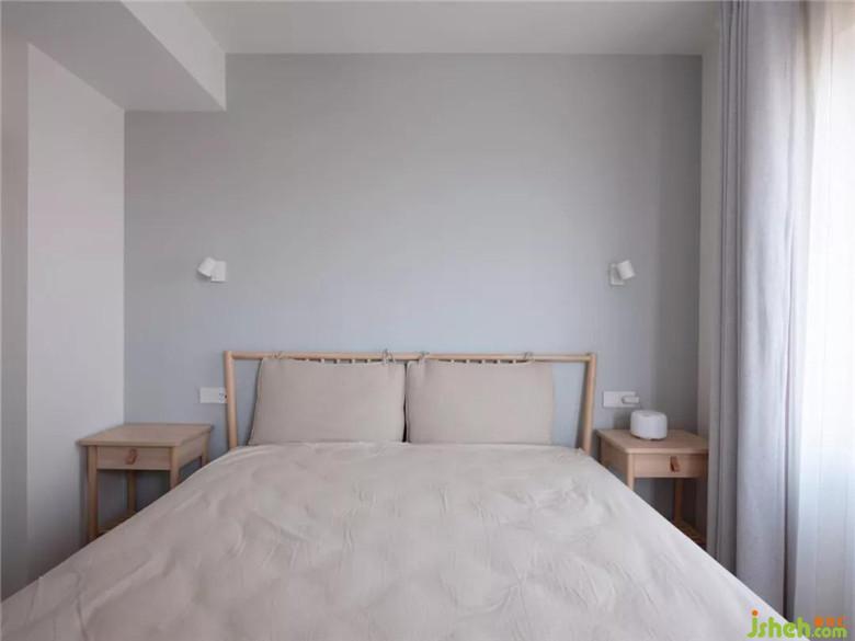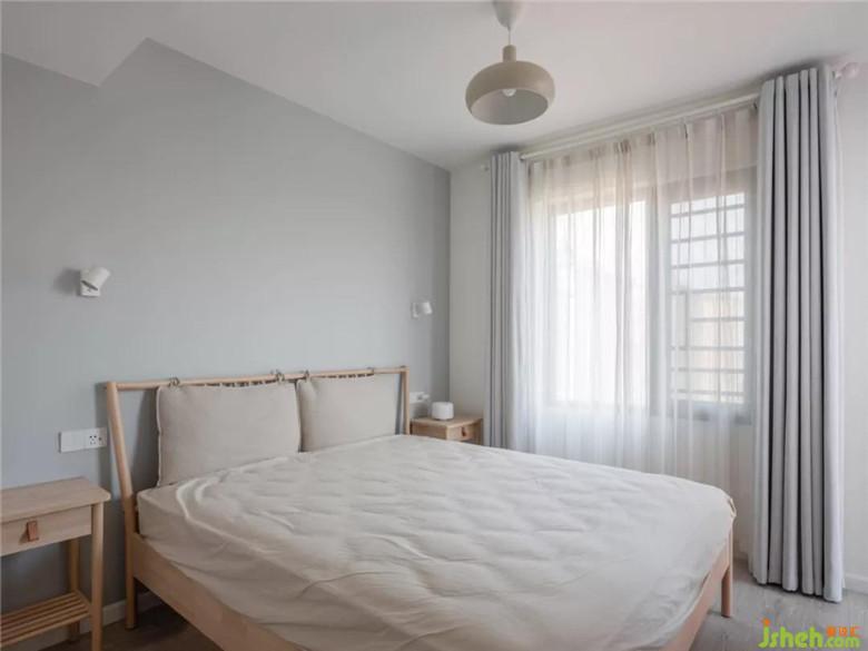 卧室改造后清新舒畅,窗户增加了白纱窗帘和遮光窗帘,每天清晨自由呼吸空气与享受阳光的甜蜜。设计师在卧室做了石膏板平梁吊顶,具有防火,隔音隔热等特点且稳定性好。极简的卧室,像走进一朵柔软的云朵,闭上眼睛,时间静止于此。