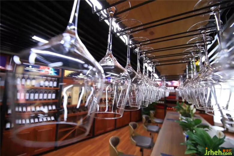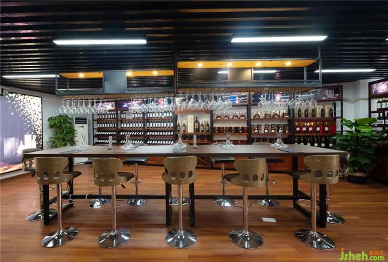 环绕四周的酒柜与吊顶地板相连,扩大了整个空间视觉上的整体性,酒柜的设置一方面为顾客挑选提供了便利,另一方面又作为“墙”分割了环境,这样的设计在节省空间的同时又将空间利用了起来,楼梯间使用了玻璃瓶造型的吊灯,时尚复古的同时,也呼应了酒庄的主题。店铺装修