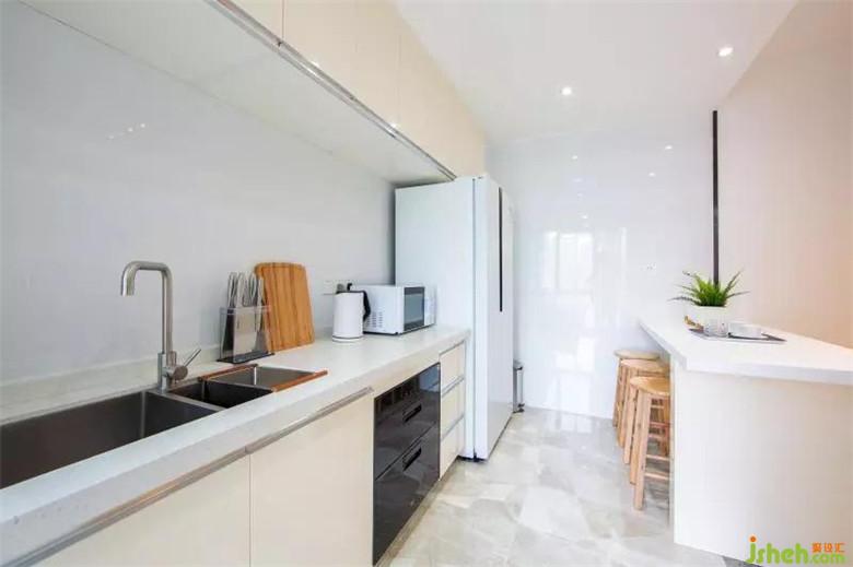 半开放式的厨房,打破了原有死板的功能分区,让客厅,厨房,餐厅串通,增强了三个功能空间生活场景的互动,生活动线的巧妙过渡连接,提高空间的利用率同时,让房子更加通透