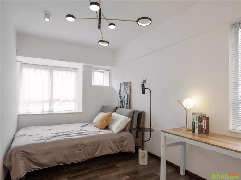 次卧年轻房则以白色为主调,清新明亮,多以有设计感的单品,来衬托房间的温馨舒适。卧室以无吊顶的形式,使卧室空间更加开阔。